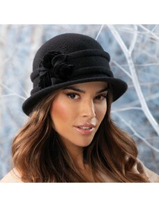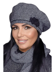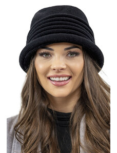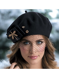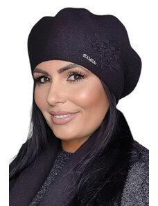 KRUMLOVANKA Dámský vlněný baret s aplikací a flísovou podšívkou W-0014/018 černý