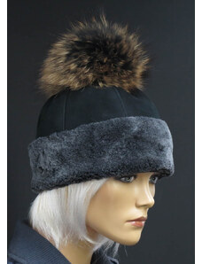 Splus Dámská kožešinová čepice s bambulí z mývalovce 4714 černá s šedým melírem