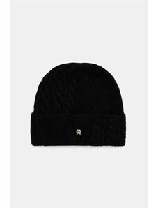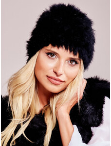 K-Fashion Dámská klasická čepice z alpaky s dekorativní destičkou černá