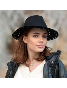 KRUMLOVANKA Luxusní černý dámský klobouk Fedora vlněný - plstěný ozdoben nýty Made in Italy Co-P-021