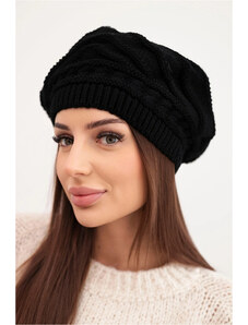 K-Fashion Dámská zimní pletená čepice volného střihu s ozdobným vzorem K378 černá