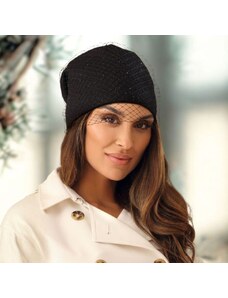 KRUMLOVANKA Elegantní dámská bavlněná čepice s francouzským závojem W-0633/018 černá
