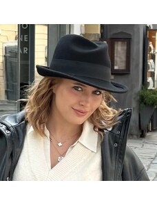 KRUMLOVANKA Dámský černý klobouk vlněný - plstěný - styl Fedora malá krempa Made in Italy Co-P-003
