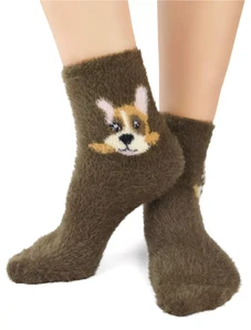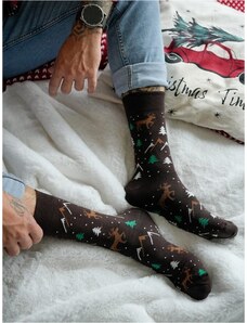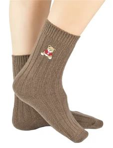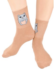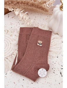 Kesi Hnědé teplé dámské ponožky s medvídkem a vlnou Hnědá
