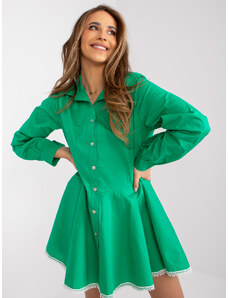 ITALY MODA Zelené košilové mini šaty s krajkou na sukni -green Zelená