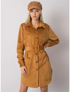 ITALY MODA Světle hnědé manšestrové šaty s páskem -camel Hnědá