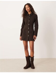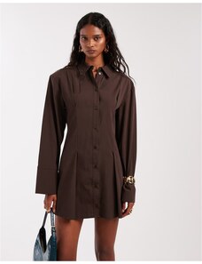 ASOS DESIGN cinched shoulder pad shirt mini dress in chocolate-Brown