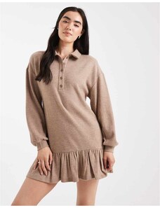 Miss Selfridge brushed rib collar detail sweat dress in camel-Neutral