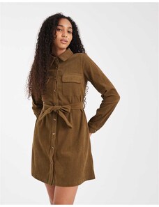 Threadbare cord button through shirt dress in khaki-Green