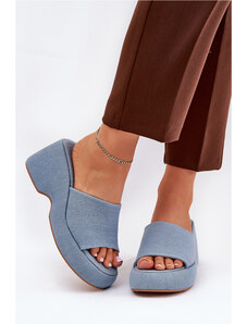 Boto Materiálové Dámské Pantofle Na Platformě A Klínu Džínové Afisal