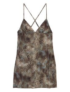 Bershka Šaty béžová / tmavě hnědá / černá