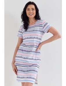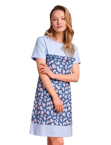 Košilka je vyrobená ze 100% bavlny, která je příjemná na dotek a hodí se i pro citlivou pokožku. Dámská košilka vás zaujme svým vzhledem a příjemným materiálem. Je ušitá ze 100% bavlny, která je prodyšná a přizpůsobivá. Má kulatý výstřih a praktické kapsy. Je zdobená jemnými šedými proužky. Košilka v modré barvě má kratší délku a krátké rukávy, proto je vhodná také na léto.Vyrobeno v EU.