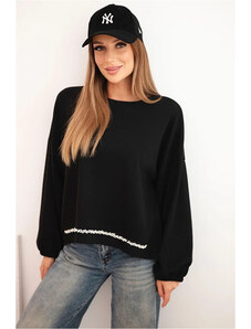 K-Fashion Dámská mikina s ozdobným zakončením dole černá