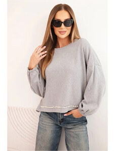 K-Fashion Dámská mikina s ozdobným zakončením na spodku šedá