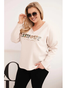 K-Fashion Dámská mikina Plus Size s nápisem a výstřihem do V béžová