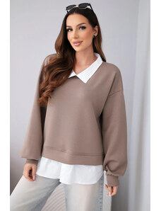 K-Fashion Dámská máslová mikina z viskózy s košilovou vsadkou fango