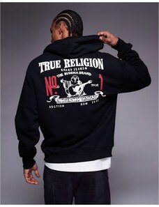 True Religion zip through logo hoodie with black print in black
