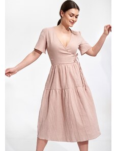 K-Fashion Dámská sukýnka Plus Size vlněná s výstřihem do V světlá béžová