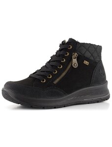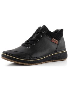 Dámské kotníkové boty značky Rieker na pohodlném klínku s lakovým vzorem. Díky zateplení budou vaše nohy v teple. Boty zaujmou na první pohled.