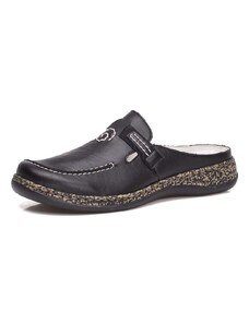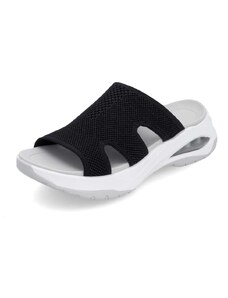 Dámské nazouváky značky RIEKER, to je ideální volba pro letní dny. Zdobené jsou tmavým prošíváním, páskem s gumičkou přes nárt a tím se přizpůsobí Vaší noze i při dlouhodobé chůzi. Podešev s technologií Antistress je flexibilní a tlumí nárazy při došlapu. Kožená stélka je příjemně měkká při každém nášlapu na ní. Tento model bude vhodný na běžné pochůzky městem či na dlouhé nákupy s kamarádkami.