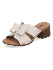 Dopřejte si eleganci těmito koženými nazouváky RIEKER, které vnesou do vašeho šatníku svěží design svojí světlou barvou s jemnými odlesky dekorovanou ozdobnou perforací a potiskem. Nízký, široký podpatek zajišťuje stabilitu při chůzi, čímž kombinuje eleganci s komfortem a ani celodenní nošení nebude nepříjemné. Tyto úžasné pantofle značky RIEKER dodají každému kroku půvab a jsou ideální volbou pro ty, které chtějí oživit svůj letní outfit.