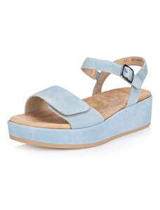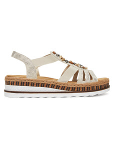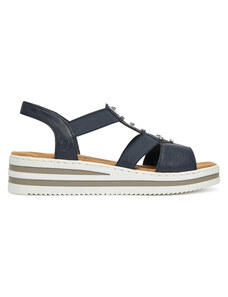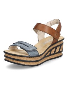Dámské sandály značky Rieker na pohodlném klínku s ozdobným vzorem na pásku. Díky pásku na sponu si obuv nastavíte dle potřeby.