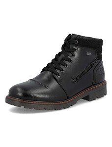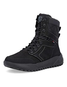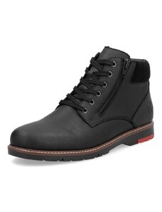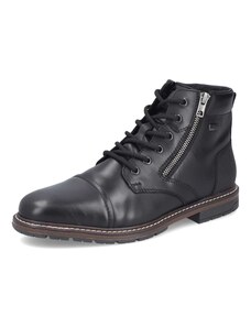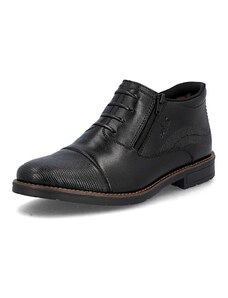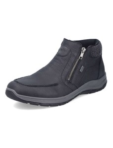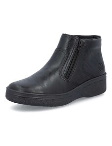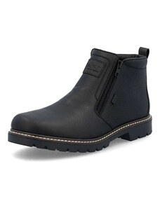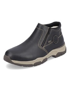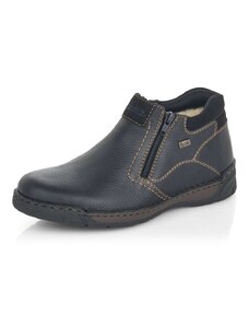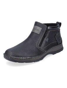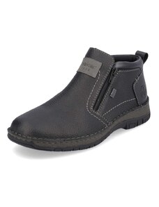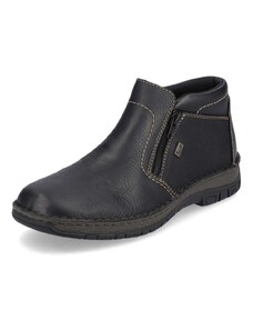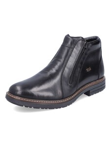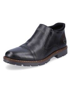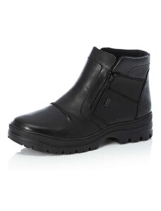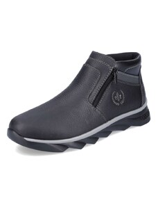 Tyto boty RIEKER přinášejí spojení moderního vzhledu a praktického využití pro každodenní nošení. Kvalitní černý svršek v koženém provedení dekoruje nášivka s logem značky, která vystihuje kvalitu a jedinečnost tohoto modelu. Obouvání usnadňují dva boční zipy umístěné na nártu, které navíc dodávají modelu zajímavý detail. Vnitřní zateplená stélka zajišťuje tepelný komfort během chladných dnů a podešev tlumí nárazy při chůzi. Tento univerzální model se skvěle hodí ke džínám i ke kalhotám – ideální společník do práce i pro volný čas.