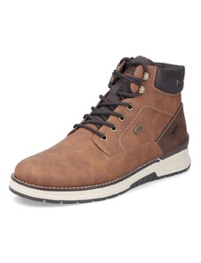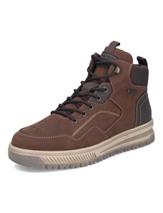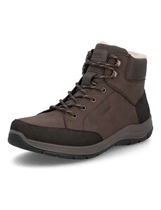 Dokonalé obutí pro zimní měsíce – kotníkové boty ve sportovním stylu od značky RIEKER jsou navrženy tak, aby vám poskytly spolehlivou ochranu, pohodlí a zároveň stylový vzhled v každé situaci. Kožený svršek vybavený nepromokavou membránou se postará o to, aby vaše nohy zůstaly v suchu i během deštivých či zasněžených dnů. Zatímco originální kombinace koženého materiálu a textilního lemu horního okraje dodává modelu dynamický a moderní charakter svým barevným kontrastem. O příjemný pocit v chladných dnech se postará hřejivá podšívka z ovčí vlny. Vyjímatelná stélka poskytne pohodlí na každém kroku svojí měkkostí a tvarem, zároveň umožní snadnou údržbu obuvi a poskytuje izolační vlastnosti proti chladu. Praktický boční zip oceníte při rychlém obouvání, zatímco šněrování vám dává možnost upravit si boty přesně podle vašich potřeb. Designově výrazná a zároveň funkční podešev nejen skvěle vypadá, ale především spolehlivě tlumí nárazy při chůzi a poskytuje stabilitu i na méně příznivých površích svým inovativním zpracováním. Tyto boty jsou proto dokonalým společníkem pro každodenní nošení – ať už do města, do práce nebo na volnočasové aktivity během zimního období. Dokonalá souhra moderního vzhledu a maximálního pohodlí díky funkčním technologiím to jsou boty RIEKER Sport.