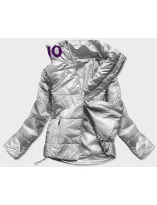 S'WEST Krátká stříbrná prošívaná dámská bunda se stojáčkem (B9567)