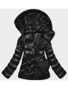 Libland Dámská lesklá bunda s žebrovaným lemem černá (LD7250)