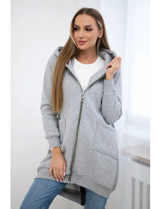 LHD Dámská dlouhá mikina s kapucí světle šedá (AMG-675/2)