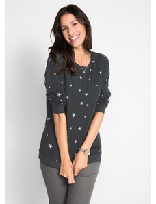 Bonprix Potištěné bavlněné tričko, dlouhý rukáv černá Žena