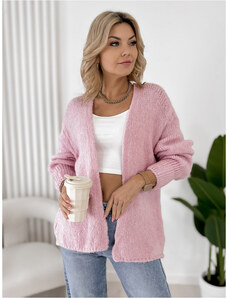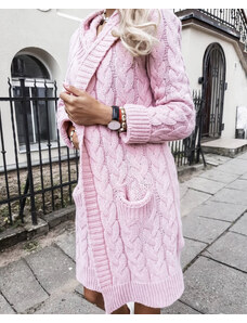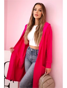 MladaModa Kardigánový svetr s kapucí a kapsami model 2019-24 jasný růžový