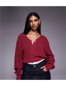 Kaiia exclusive v front button through balloon sleeve cardigan in cranberry-Red