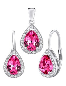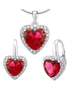 Silvego Dárková souprava stříbrných šperků - náušnice a přívěsek se syntetickým rubínem