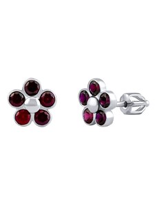 Silvego Stříbrné náušnice Cheryl s pravým přírodním Granátem a čirými Brilliance Zirconia