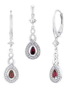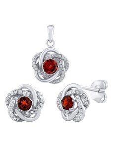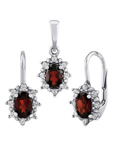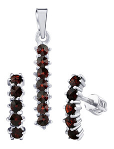 Silvego Stříbrný set šperků ROSALYN - náušnice a přívěsek s granátem a Brilliance Zirconia