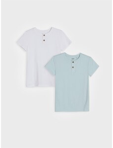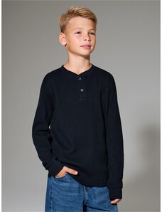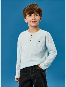 Sinsay - Bavlněné tričko s dlouhými rukávy - modrá