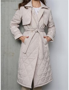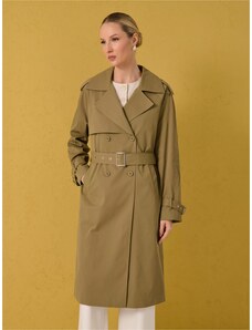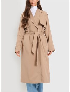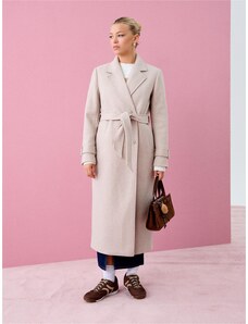 Reserved - Dvouřadý trenčkotový kabát s páskem - béžová