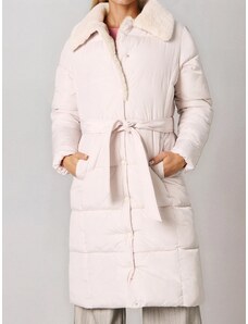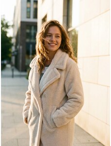 Sinsay - Dlouhý kabát s umělým kožíškem - béžová