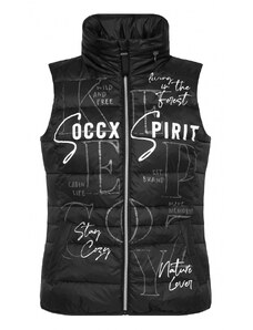Prošivane vesty jsou v modě a jsou tim pravým kouskem pro podzimni obdobi. Tato lehka vesta SOCCX sazi na lesklý vzhled, vysoký limec a skrytý zip. Vnitřni podšivku zdobi potisk značky, zatimco na předni straně je umistěna tonova našivka. Pod prošivanou vestu se skvěle hodi mikiny s kapuci a pletene svetry, ktere vytvařeji modni ležerni vzhled. Modelka je 174 cm vysoka a nosi vel. S. Ženy > Oblečení > Bundy a vesty