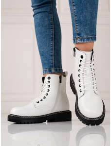 Dámské kotníčkové boty na plochém podpatku KK274539 Bílá s černou - BIG STAR