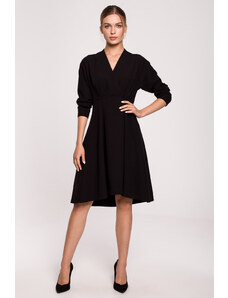 Dark beige dress with a frill and a V-neck SUBLEVEL.
