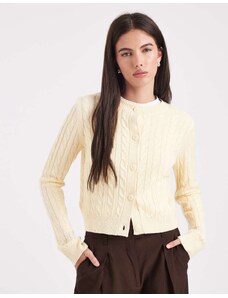 Miss Selfridge cable knit crew neck cardigan in buttermilk-Yellow