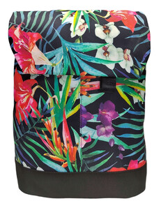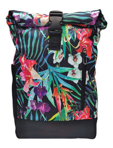 Tapple Černo-zeleno-růžový dámský rolovací batoh s květinami Madison