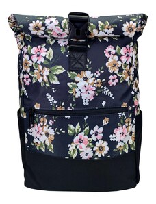 Tapple Černo-modro-růžový dámský rolovací batoh s květinami Madison