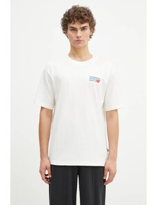 Bavlněné tričko New Balance béžová barva, s aplikací, MT41908SST