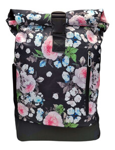 Tapple Černo-modro-růžový dámský rolovací batoh s květinami Madison