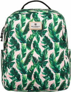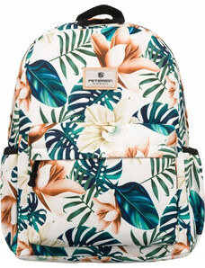 Peterson bílo-zelený prostorný batoh se vzorem listů Vzory