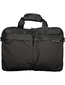 Tommy Hilfiger Men's Brand Logo Detailed Zippered Multi-Pocket Black Shoulder Bag